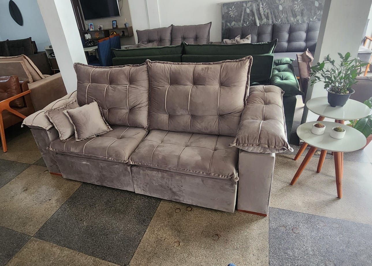 Sofá retrátil e reclinável com espuma D33 de 16cm, com braços acolchoados, estrutura de madeira maciça eucalipto imuzado, tratado e seco em estufa, molas bonnel e persintas italiana tramadas e entrelaçadas. Diversas cores. PREÇO SOB MEDIDA.